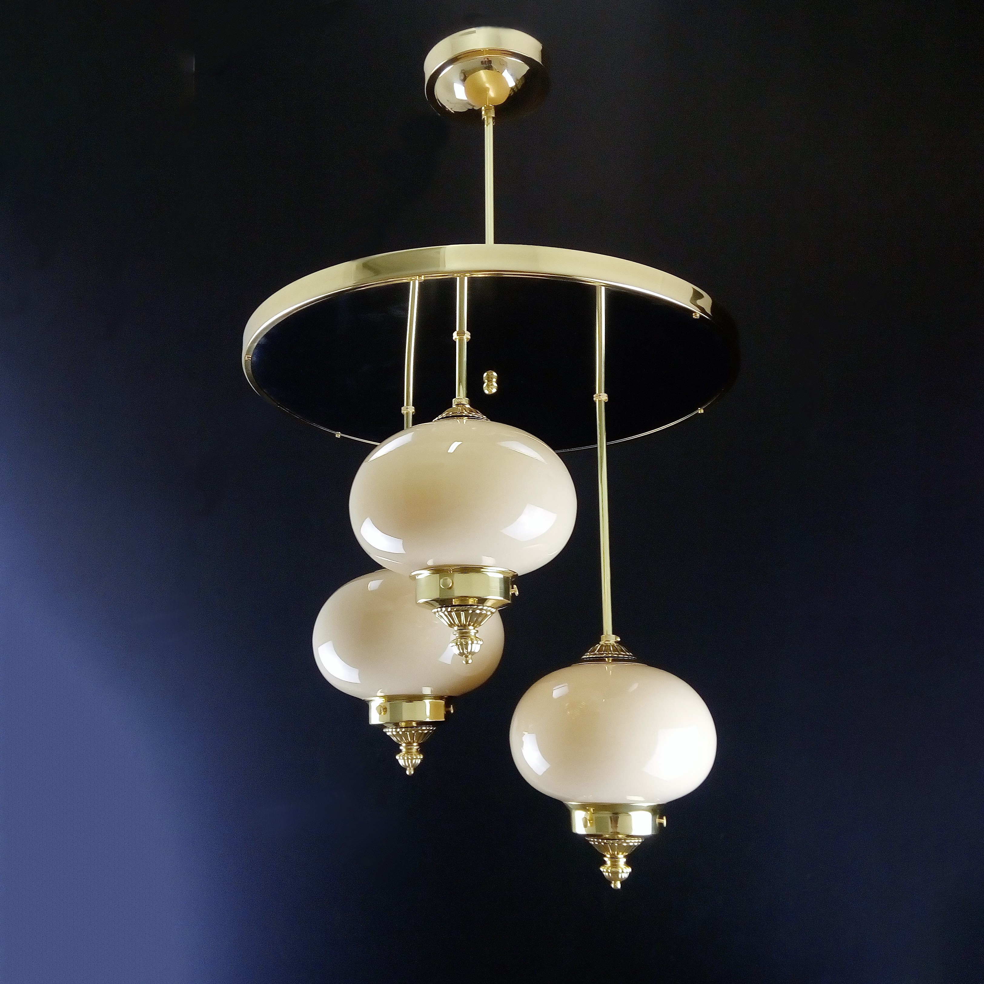 Large Brass Chandeliers With Opal Glass Balls In Art Deco Style Bohemian Glass