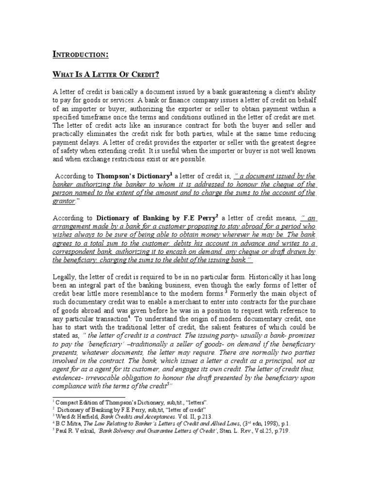 18 Letter Of Credit Pdf Letter Of Credit Credit Finance